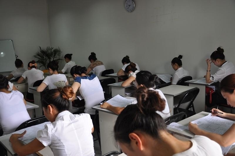 图为大美东方重庆校区美容师高级职业技能等级考试理论考试现场